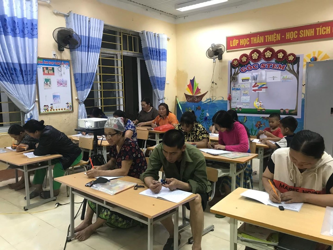 Lớp học xoá mù chữ cho bà con dân tộc Mông ở bản Làng Ươm và xóm Lân Vai xã Dân Tiến
