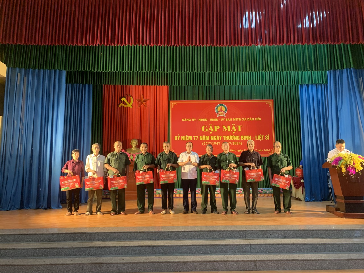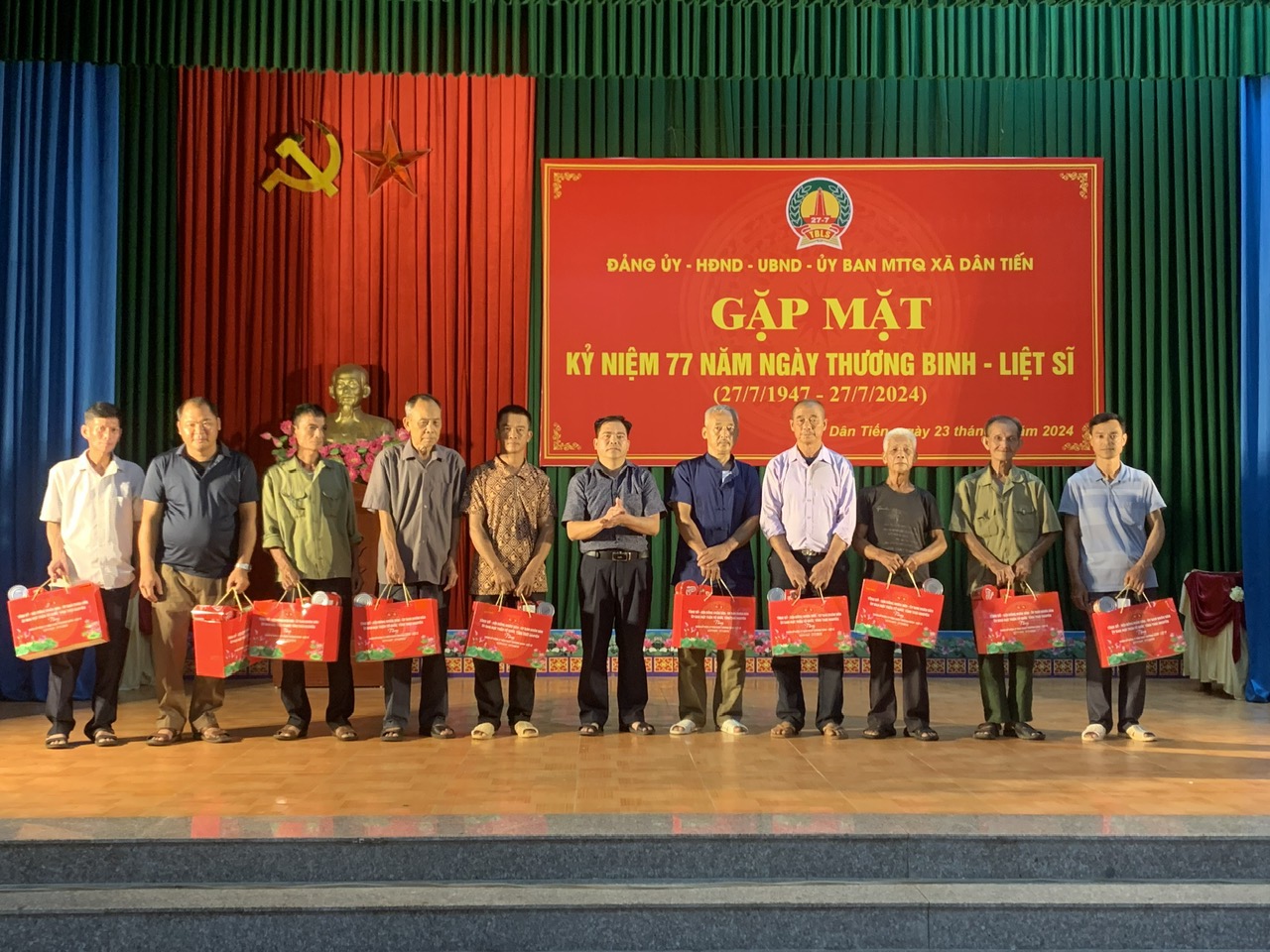 Nhân kỷ niệm 77 năm Ngày Thương binh - Liệt sĩ (27/7/1947 - 27/7/2024), Chiều 23/7/2024, Đảng ủy - HĐND -UBND - Ủy ban MTTQ xã Dân Tiến tổ chức Chương trình thăm, tặng quà gia đình người có công với cách mạng, thân nhân liệt sỹ trên địa xã Dân Tiến. Dự và tặng quà tại chương trình có đồng chí Đồng chí Dương Văn Ngoan, Uỷ viên ban thường vụ,Trưởng ban dân vận, Chủ tịch UB MTTQ huyện Võ Nhai; về phía xã Dân Tiến có đồng chí Đặng Văn Tuân, Bí thư Đảng ủy xã; đồng chí Hoàng Văn Hán, Phó bí thư thường trực, chủ tịch HĐND xã, đồng chí Trần Lê Dũng, phó bí thư, Chủ tịch UBND xã; lãnh đạo HĐND, UBND, UB MTTQ xã; cán bộ, công chức xã; Các đồng chí Thương binh, bệnh binh và thân nhân gia đình Liệt sỹ, Người có công trên địa bàn xã.
